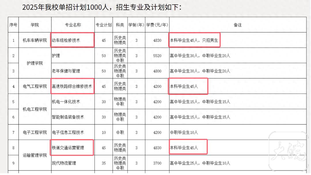 我看了內(nèi)容才知道,原來是鄭州鐵路職業(yè)技術(shù)學(xué)院發(fā)布的《鄭州鐵路職業(yè)技術(shù)學(xué)院2025年單獨(dú)考試招生章程》中,有三個專業(yè)的備注欄寫著“本科畢業(yè)生”。這三個專業(yè)分別是動車組檢修技術(shù)、高速鐵路綜合維修技術(shù)、鐵道交通運(yùn)營管理。