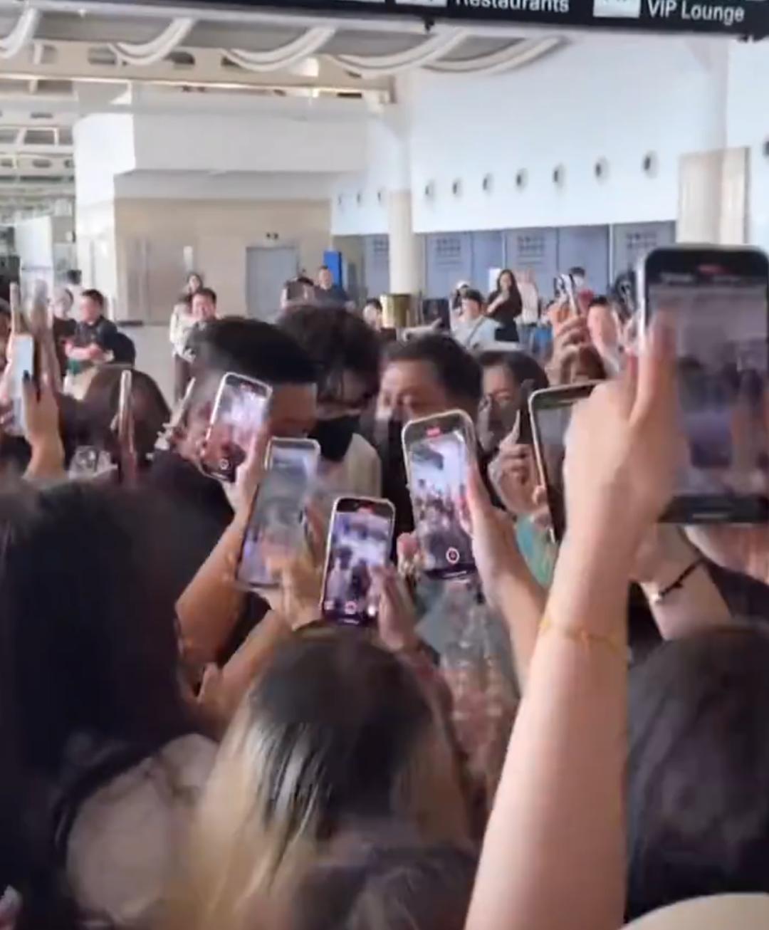 田栩寧被圍堵到寸步難行,有人大喊“別擠了”。雖然視頻中田栩寧被擠到“變形”,但仍全程保持冷靜,甚至還“抽空”收下粉絲的信。